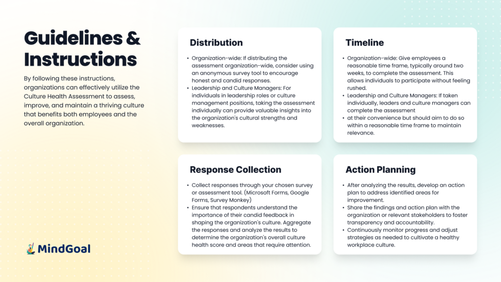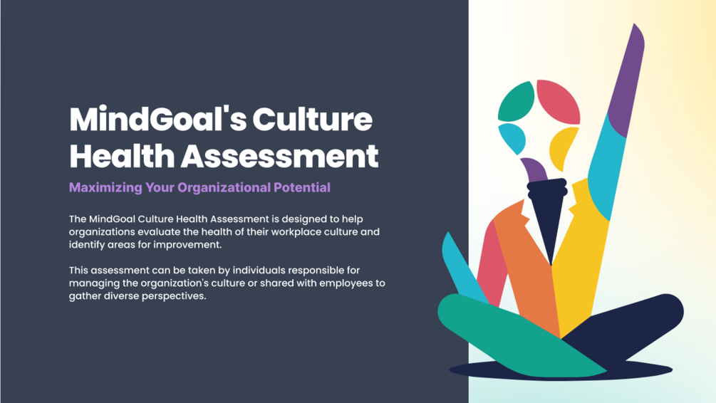 The MindGoal Culture Health Assessment is designed to help organizations evaluate the health of their workplace culture and identify areas for improvement.